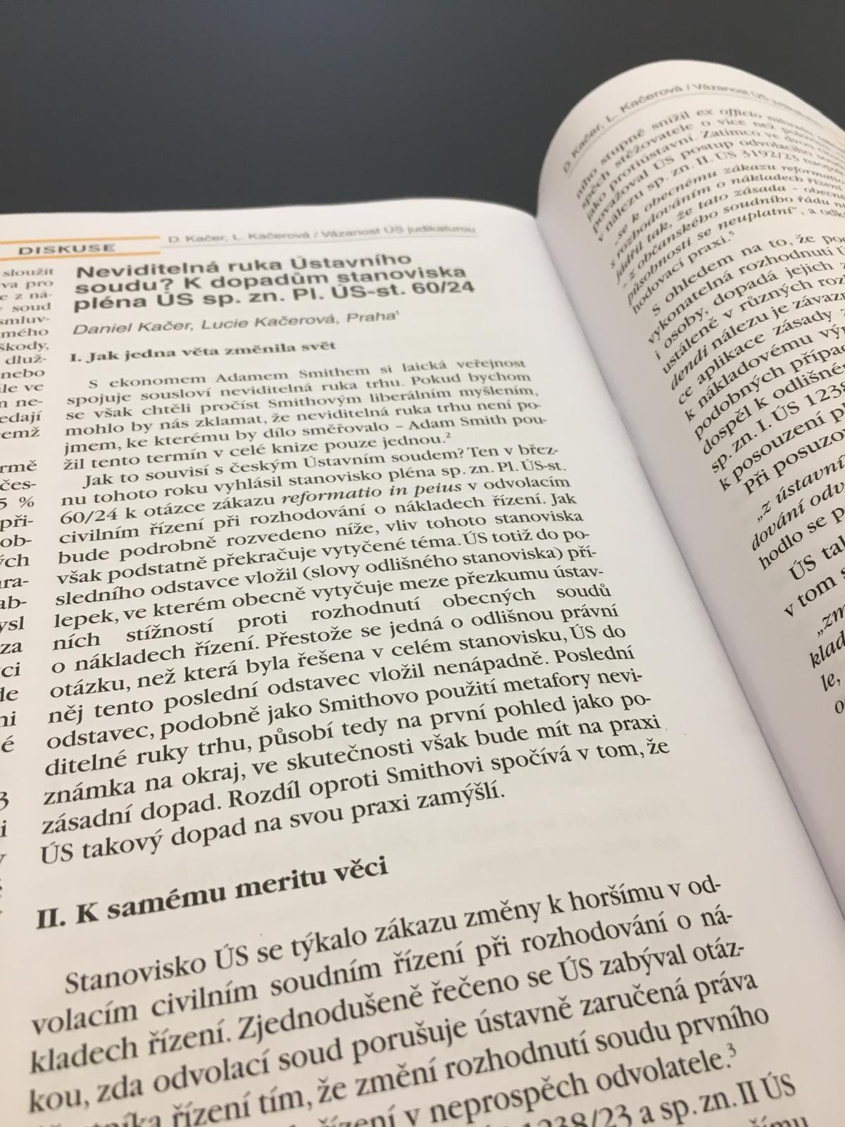 Daniel Kačer, Lucie Kačerová: Neviditelná ruka Ústavního soudu? K dopadům stanoviska pléna ÚS sp. zn. Pl. ÚS-st. 60/24